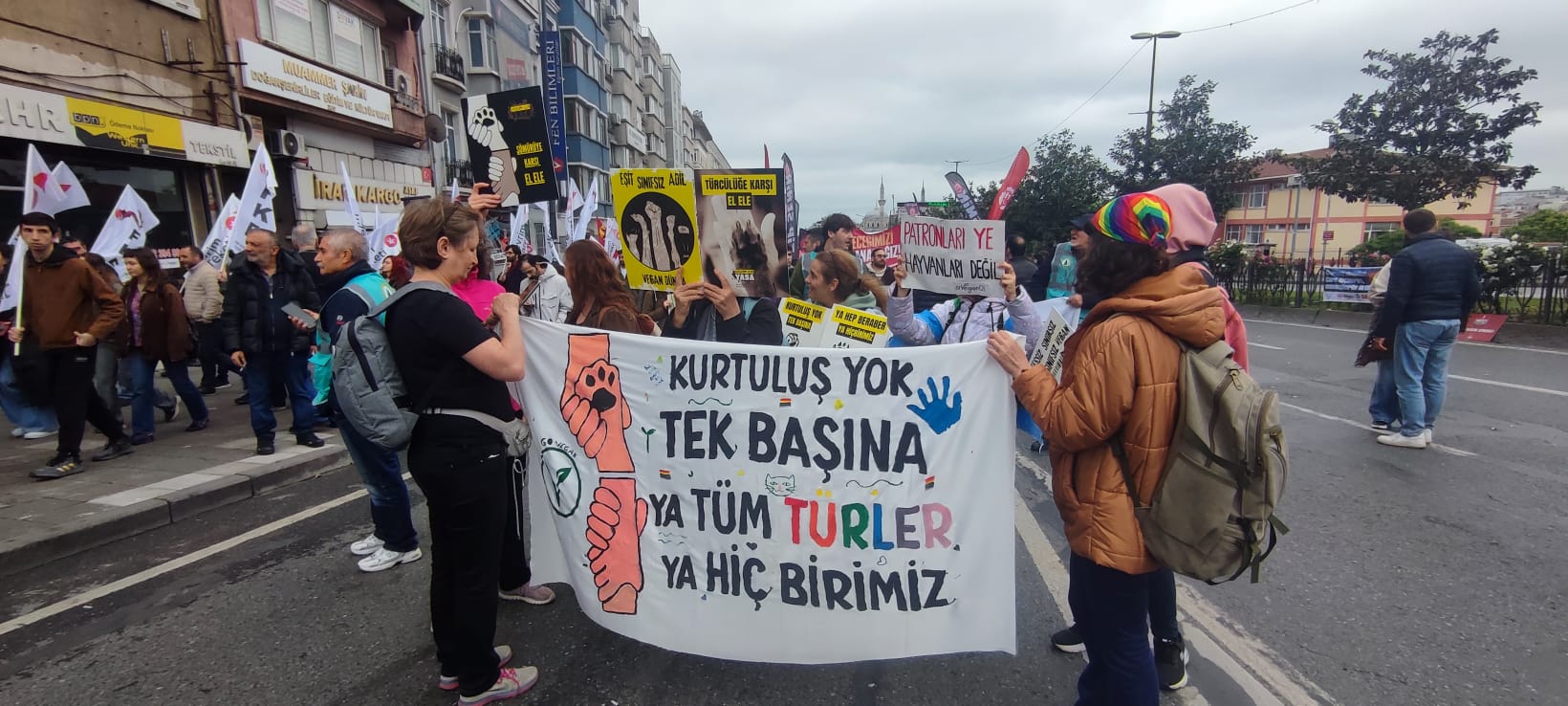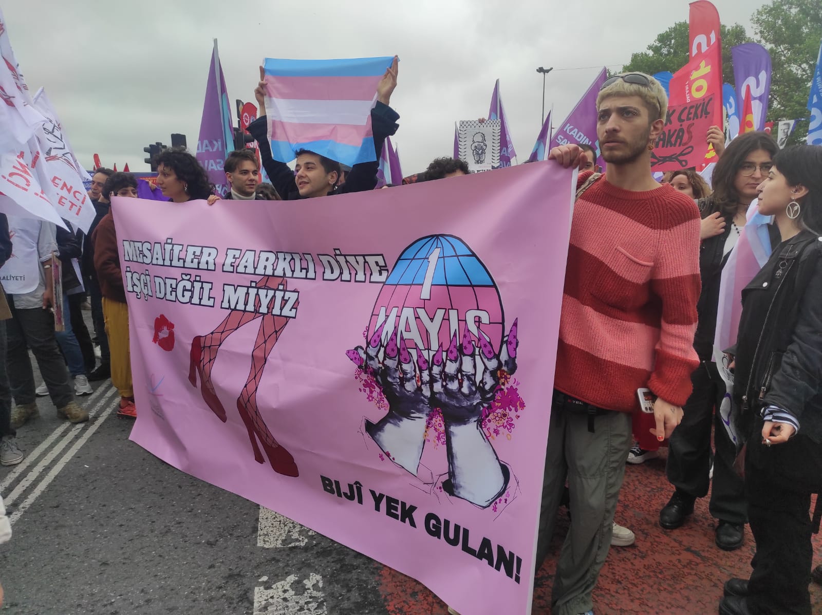 Oluşturulan kortejler içerisinde hemen hemen işçilerin tüm talepleri dövizlere işlenmiş, sloganlaşmıştı. Çocuk işçilik, insanca yaşanacak ücret, maaşlar üzerindeki vergi yükü, işçi sağlığı ve iş güvenliği, OVP, Kürt ulusunun talepleri, tutuklanan gazeteciler, eğitim ve sağlık hakkı, esnek çalışma, kadro hakkı… Ancak kadın ve LGBTİ+’lar için talepler yine yeterince yer almadı alanda. Kamu sendikalarının, feministlerin, kadın ve LGBTİ+ örgütlerinin pankart ve dövizleri dışında emek ve meslek örgütleri genel olarak kadınları ve LGBTİ+’ları 1 Mayıs’ta da görmemişti. Zaten işçi sendikalarında kadın işçilerin katılımının temsili düzeyde tutulduğu açıktı. Sendikalarda kadın temsili ve örgütlenmesinin nerede durduğunu alanda bir kez daha görmüş olduk. Genel kitlesinin katılımının da temsili olduğunu es geçmeyelim.