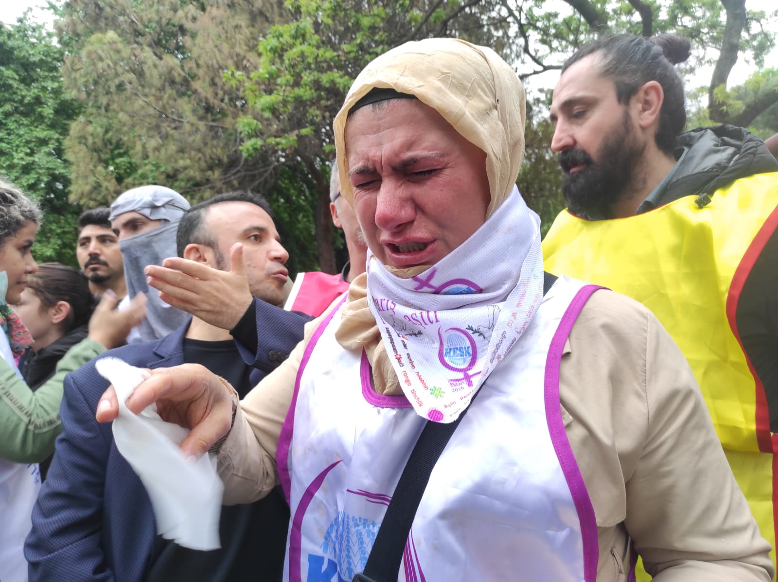 Kadınların zılgıtlarıyla çekilen halayların yanı sıra Taksim’e yürüyüşün nasıl gerçekleşeceğine dair gergin bekleyiş içerisinde sendika kortejlerindeki kadınlarla görüşerek hangi taleplerle 1 Mayıs alanında olduklarına dair sohbet etmeye çalıştık.