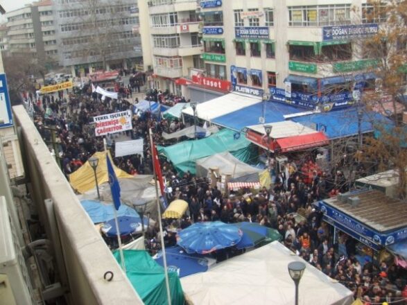 15 Aralık günü Türkiye’nin çeşitli illerinden, ilçelerinden gelen Tekgıda-İş Sendikası üyeleri, AKP Genel Merkezi önünde buluştular. Amaçları, özelleştirmeler sonrasında kendilerine dayatılan 4-c statüsünü protesto etmek ve bu statüde çalışmayacaklarını dünya âleme duyurmaktı. Çünkü Özelleştirme İdaresi Başkanlığı (ÖİB), yaprak tütün fabrikalarının da kapanacağını, 10 bin dolayında işçinin 4-c statüsünde başka kamu kurumlarına gönderileceğini açıklamıştı. 4-c statüsü düşük ücretler, güvencesiz çalışma, yıllık izin ve kıdem tazminatından yoksun olma anlamına geliyordu. Önce Türk-İş Genel Merkezi önünde toplanan işçiler öfkeliydiler.