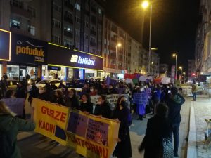 Kadına Yönelik Şiddete Karşı Uluslararası Mücadele Günü olan 25 Kasım’da Gebze’de yapılan gece yürüyüşüyle kadınlara yönelik artan şiddet protesto edildi. Gebze Kadın Platformu’nun Trafo Meydanı’nda akşam saatlerinde toplanmasıyla başlayan eylemde “Haklarımız, Yaşamlarımız, İstanbul Sözleşmesi Bizim. Vazgeçmiyoruz” pankartı taşındı. Kent Meydanı’na yapılan yürüyüş esnasında “Gelsin devlet, gelsin koca, gelsin cop, inadına isyan inadına özgürlük”, “İstanbul Sözleşmesi Yaşatır Yaşattırır” “Yaşasın sınıf dayanışması”, “Kadınlar el ele mücadeleye”, “Kadın cinayetleri politiktir” vb sloganlar sık sık atıldı. Katledilen Mirabal Kardeşler’den günümüze kadına yönelik şiddetin her geçen gün arttığına dikkat çekilen konuşmalarda, peş peşe yapılan zamlarla halkın alım gücünün azaldığı yönlü söylemler ağırlıklı oldu.