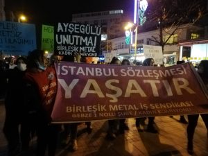25 Kasım Kadına Yönelik Şiddetle Mücadele ve Uluslararası Dayanışma gününde, kadınlar her yerde erkek-devlet şiddetine karşı isyanlarını dile getirip, mücadeleye devam edeceklerini söylediler. Tünel’deki feminist gece yürüyüşünde barikatlar devrildi. Gebze’deki eylemde Birleşik Metal İş Sendikası Kadın Komisyonu da alandaydı.
