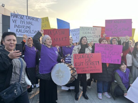 DİSK’te bu yıla kadar Birleşik Metal Sendikası 8 Mart etkinlikleri ile açık ara öndeydi. Yine öyle… Geçtiğimiz yıl Gebze’de sendikanın kadın taleplerini öne çıkaran yürüyüş, bu yıl da yapıldı. Metal işçisi kadınları sokaklara alıştıran bu tür eylemleri önemli buluyoruz. Sendikada bir süredir yapılan kadın çalışmalarının meyvelerini verdiğini görüyoruz; kadın temsilci ve şube yöneticisi sayısı artmış mesela, Petrol-İş’ten farklı olarak. İki sendikayı karşılaştırma nedenim taraf tuttuğumdan değil; ikisinin de erkek ağırlıklı sektörlerde örgütlü olmalarından.
