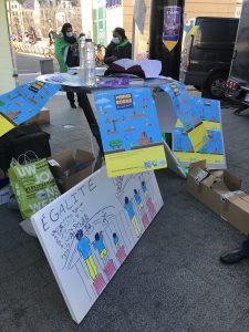 Aynı gün, Dünya Kadın Yürüyüşü (WMW- World March of Women) tarafından saat 16.00’dan itibaren merkez istasyonda feminist stantların yer aldığı bir etkinlik de düzenlendi. Ardından 17.30’da büyük dünya kadın yürüyüşü başladı. Binlerce kadının, LGBTİ+ bireyin katıldığı bu yürüyüş oldukça görkemli, çok dilli, isyan dolu ve etkileyiciydi.