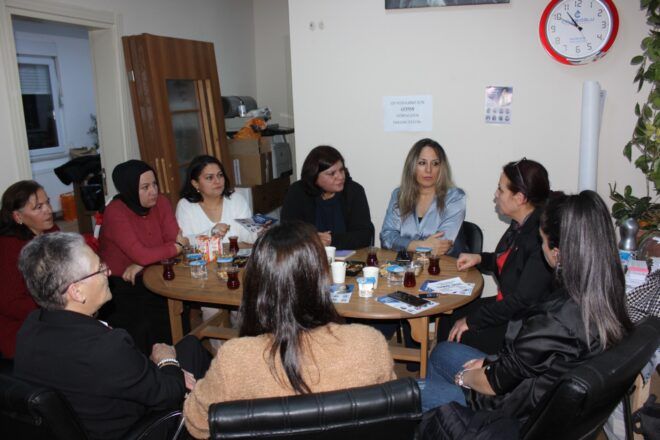 Eve alınan işlerin çok düşük ücretli işler olduğuna vurgu yapan Esengül, mahallede çocuğuna bakıcı arayan kadınlarla iş arayan kadınları da buluşturduklarını, bakıcı ücretini karşılayamayan annelere destek olmak için Sosyal Hizmetler Müdürlüğü ile bir süreç yürüttüklerinin altını çiziyor: “Buradan hareketle önümüzdeki dönem için bir proje oluşturduk. 7/24 yani gece/gündüz bakım evi. Bunun için belediyeyle görüşerek Aile ve Sosyal Hizmetler Bakanlığı’nın ücretsiz kreş hizmeti vermesini sağlamaya çalışacağız. Belediyelerin bu yönde yaptığı hazırlıkları takip ediyoruz.”