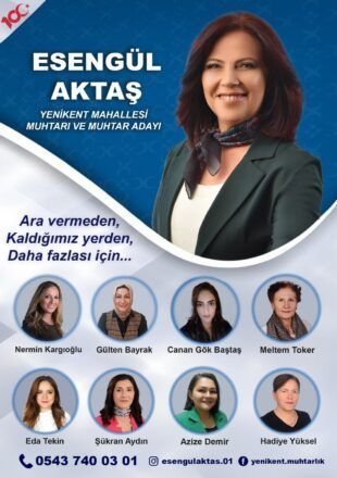 Gebze’ye bağlı Yenikent muhtarı ve muhtar adayı Esengül Aktaş, kadın azalarla birlikte mahalleyi beş yıldır yönetiyor. Burası bir “Kadınlar Kenti” adeta. Pek çok kadına iş imkânı yaratılırken çocuk bakımını da ihmal etmiyorlar. Kadına yönelik şiddete karşı mücadele vermelerinin yanı sıra yaşlı kadınların belediyenin düzenlediği geziler aracılığıyla dışarı çıkmasını da sağlıyorlar.