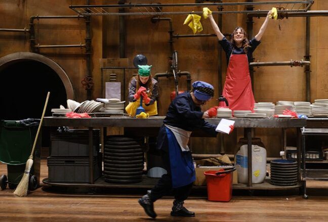 Morris Panych’in yazdığı kara komedi, Ceren Aksakal Demirtaş’ın çevirisiyle ve Işıl Kasapoğlu’nun muazzam yönetmenliğinde sahneye taşındı. Oyun bulaşık yıkamak gibi kadınların görünmez emek türlerinden birini sahnenin merkezine yerleştirirken, sınıfın ağırlığını da kadın bedenleri üzerinden hissettiriyor.