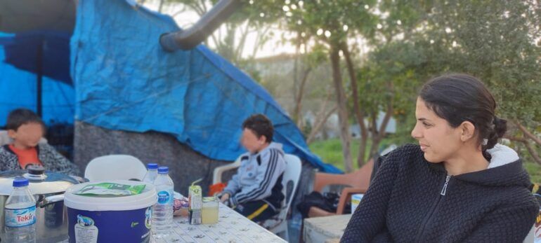 Aylin’le bu söyleşiyi mart ayının ortalarında yapmıştık. Sonrasında bir gün arayarak eşini terk ettiğini ve ailesine sığındığını anlattı. Ailesinin de evi hasarlı olduğu için çadırda oldukça kalabalık şekilde yaşamaya çalışıyor şimdi. Kaldığı çadırı su basınca yine birkaç gün açıkta kalmışlar. Gönüllülerin temin ettiği bir çadır bulmuşlar. Islanan eşyalarını kullanamadıkları için battaniye bulmaya çalışıyorlardı.