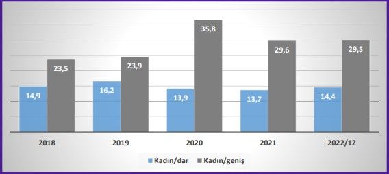 2018-2022 yılları arasındaki son beş yıllık dönemde, kadın istihdamının yalnızca 1,9 puan arttığı görülüyor. 2018’de yüzde 29,4 olan kadın istihdamı oranı, Aralık 2022’de yüzde 31,3’e yükseldi.