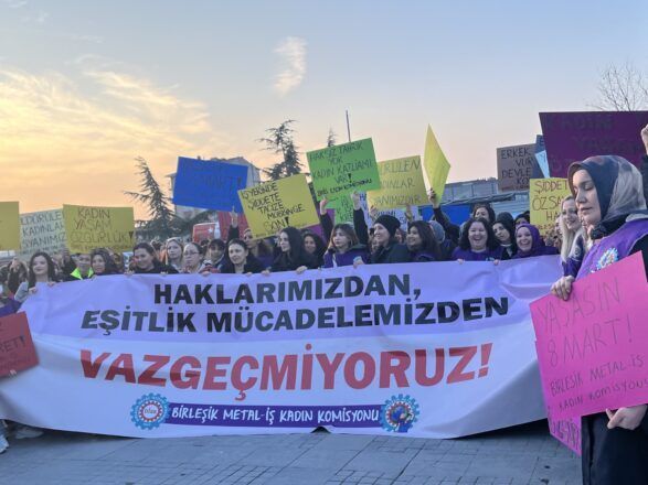 Ben ve şu anda İzmir Şube sekreteri arkadaşımız Nurhan Karadağ ikimiz de kadın çalışması yapıyoruz ve ikimiz de sürgün edildik. Nurhan Karadağ 6 Ocak tarihinde sürüldü, benim sürülme kararımı ise 8 Mart’ta yazmışlar. Adeta bir 8 Mart hediyesi gibi sundular, ertesi gün bana. 8 Mart’ta işyerinde değildim kadın arkadaşlarla birlikte eylemdeydik, 9 Martta gördüm.