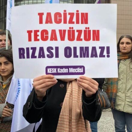 İstanbul Yedikule Göğüs Hastalıkları ve Göğüs Cerrahisi Eğitim ve Araştırma Hastanesi’nde görevli asistan doktor S.E.’nin hemşire H.Z.’ye “cinsel saldırıdan” yargılandığı davanın üçüncü ve son duruşması 25 Ocak’taydı. Duruşmaya H.Z.’nin avukatı Feyza Altun, SES Genel Merkez Sekreteri Nursel Yücesoy, KESK Genel Merkez Kadın Sekreteri Döne Gevher, başka hastanelerden kadın arkadaşları ve dayanışma amaçlı gelen kadın örgütleri yer aldı. Mahkeme öncesi Bakırköy Adliyesi’nin önünde basın açıklaması gerçekleştirildi. Basın açıklamasını SES Aksaray Kadın Sekreteri Helin Göçmen okudu. Açıklamada; İstanbul Sözleşmesinden ILO’ nun 190 sayılı sözleşmesine, 6284 sayılı yasaya sahip çıkılacağına ve kadınların hayatını hiçe sayan her durumda kadınların susmayacağına dair cümlelere geniş yer verildi.