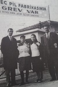 Evet, Petrol-İş Sendikası’nda sendikanın tarihini yazmaya çalışanların tırtıklayarak, çeşitli sendika yayınlarında kullandıkları grevin bir de fotoğraf albümü vardı. Tırtıklandığını şuradan biliyorum; kütüphanede albüme ulaştığımda -ki bayağı erken bir dönemdi, bazı fotoğrafların yerinde sadece izlerini görmüştüm. İşte albümdeki fotoğraflara baktığınızda grevin her aşamasında kadın işçilerin bulunduğunu görürüz. Sendika yöneticilerinin grev alanında çektirdiği fotoğraf karelerinde mutlaka ama mutlaka bir kadın işçi üçgen başörtüsü, diz hizasındaki etek ve pardösüsüyle ile karşımıza çıkıyor. Onları grev oylamasında çadırdan çıkarken, Keşanlı Ali Destanı tiyatro gösterisini izlerken,  grev önlükleriyle nöbet tutarken görüyoruz.
