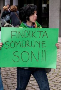 Büyük çoğunluğu küresel çikolata ve şekerleme fabrikalarına ihraç edilen fındığın öyle bir tatlı kârı var ki. Bu kârdan taviz vermemek için herkes “işçiye ne kadar düşük veririm” hesabının peşinde. Her gün televizyon ekranlarında izlediğimiz fındıklı bir çikolatanın ya da ekmeğe sürülecek kahvaltılıkların, imrendirici reklam görüntülerinin arka planını kimse tahayyül edemez. Ailesiyle kaldığı tıkış tıkış bir çadırda belki de hiç uyumadan ertesi sabah fındığa giden bir kadın, ürünleri çuvala doldururken eline geçecek üç kuruşa öfkeleniyor. “Toplayıcı kadınlar, hasat mevsimi boyunca genellikle bir çiftlikten diğerine koşturuyor. Bunlardan biri de Huriye Çivi. Zonguldak Alaplı’nın Dağlıca köyünden kadınları toplayıp fındık diyarı Yenidoğan köyüne getiriyor. Kendisi bir fındık emekçisi, ama aynı zamanda işçi başı olarak da eleman topluyor. Alaplı’nın Dağlıca köyünde sekiz yaşındaki kızını evde bırakarak işe gelen genç kadın, işin inceliklerini anlatıyor; “Sabah 06.00’da kalkıp 6.30’da kahvaltı etmeden yola çıkarız. 1.5 saat sürüyor yolumuz. Saat 08.00’da hemen işe başlıyoruz. Saat 11.00’e kadar tek derdimiz ne kadar fazla çuval fındık toplayacağımız… 11’de kahvaltımızı ederiz, sonra yine devam.. Bu arada o kadar yoğun iş var ki… Kadınlar daha ilk 20 günde zayıflamaya başlıyor. Örneğin ben 11 kilo verdim çalışırken!”