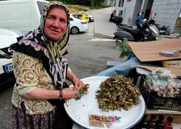 Ayağında spor ayakkabılar, ayak bileklerine kadar uzun eteği, üstünde yine uzun kollu penyesi, kasa olarak kullandığı bel çantası, başında tülbenti ve bileklerinde doğal taşlarıyla hayata dört elle sarılan bir kadın var karşımızda. Aslen Trabzonlu olan Hacile Durukan ile İstanbul Beykoz’da, Anadolu Kavağı’nda yolumuz kesişti. Yuşa Tepesi’nde esnaflık yapan emekçilerden biri olan Hacile Hanım, yazın bunaltan sıcağına ya da kışın donduran soğuğuna bana mısın demeden haftanın yedi günü dükkânını açıyor, tezgâhını donatıp arı gibi çalışıyor.