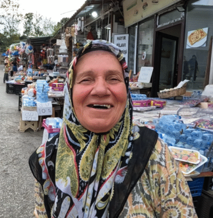 Dükkânından dışarı uzanan tezgâhında su, birbirinden güzel şekerlemeler, bal, pekmez gibi birçok ürünün yanı sıra kızının yaptığı çeşit çeşit reçeller, kudret narı, kantoron yağı da bulunan Hacile Hanıma yaşını soruyorum, “Yaşımı sorma, benim yaşım çok” diye yanıt veriyor… Ne kadar çok diye sorunca da, “75 yaşındayım” diyerek başlıyor anlatmaya. Röportaj vermeye alışık olduğunu, daha önce de birçok kez youtuber’larla konuşup çekimler yaptığını da gururlanarak belirtiyor…