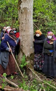 Hindistan’da Chipko Hareketi olarak bilinen ormanların kesilmesine karşı kadınlar ağaçlara sarılmıştı. İkizdere’de de kadınlar doğayı korumak için ağaçlara sarıldı, ormanda nöbet tuttu. Taş ocağının yapılması halinde en iyi ihtimal olarak çizilen tabloya göre 32 bin ağacın kesilmesinden söz ediliyor. Karedeniz gibi ağaçların çok sık olduğu bölgede bu sayının daha da artacağını tahmin etmek zor değil. Direnişte yer alan Emine Tuncer[iii]: “Ben burada doğdum burada büyüdüm burada yaşıyorum. Bizim arazilerimiz orası. Mezarlıklarımız orda, çaylıklar orda, Çaykur tozlu çayı alacak mı?” sözleriyle tepkisini dile getiriyor. Başka bir direnişçi olan Funda Okyar ise şunları söylüyor: “Ben burada doğup büyüdüm. Bu ağaç benim çocukluğumda dalına salıncak kurup sallandığım. Annemin bu ağaca beni bağlayıp, tarlada çalıştığı ağaç. Bugün hala yaşayan ağaç. Bunu kesmek ne demek biliyor musunuz? Çocuğun canını almak demek!” İkizdere’de gece gündüz nöbet devam ediyor. Nöbetteki Nuran Tuncer dereler kurumasın, balıklar ölmesin diye sesleniyor: “Atadan kalan toprağımız, ormanımız. Vermeyeceğiz. Doğa aşkına çekilsinler, hayvanlar aşkına çekilsinler, böcekler aşkına çekilsinler!”