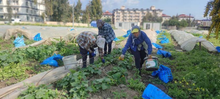 Depremle her şey alt üst oldu. Hatay’da eskiden de günübirlik işlerde çalışan kadınlar, bu güvencesiz bağ ve bahçe işlerine iyice mahkûm hale geldiler. Sigortalı bir iş bulduğu için kendini şanslı hisseden Hülya da uzun süre böyle çalışanlardan. “Normalde günlerimi tamamlamış olmam lazımdı. Ama ben sıfırdan başladım” diye özetliyor durumunu.
