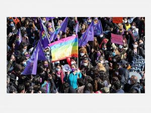 19 Mart’ı 20 Mart’a bağlayan gece, kadınlara sormadan, bundan 7 yıl önce Meclis’in kararı ile onaylanan bu sözleşmeden tek bir kişinin kararıyla Türkiye’nin çekildiği ilan edildi. 30 Nisan’da da Resmi Gazete’de bir karar yayımlandı. Bu kararda diyor ki; 1 Temmuz’da resmi işlemler tamamlanmış olacak, Türkiye’nin sözleşmeden çekilme işlemleri bitmiş olacak. Bu kararı Türkiye’deki kadınlar olarak kabul etmiyoruz. Karar, uluslararası düzeyde de büyük tepki çekti; hatta Avrupa Konseyi, Venedik Komisyonu’ndan görüş istedi. Çünkü geniş toplumsal kesimlerin desteklediği, sahip çıktığı bir sözleşmenin; kadınların, çocukların, LGBTİ+ların hayatlarına, bedenlerine, kazanımlarına göz dikmiş çok dar bir kesimin çıkarları doğrultusunda hareket eden tek bir adamın kararıyla feshedilmesi şüphesiz akla, mantığa, hukuka sığmıyor.