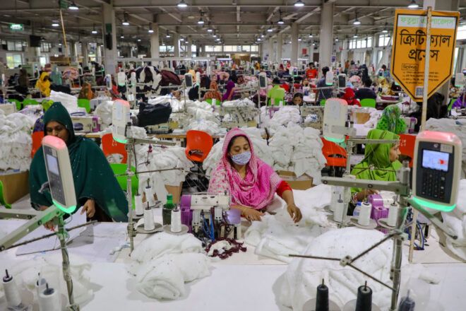 Dakka’da bir fabrikada çalışan hazırgiyim işçileri…