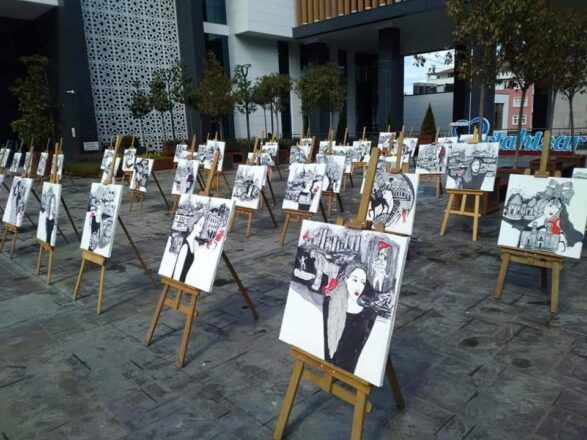 “Türkiye’de 2008-2021 yıllar arasında 3 bin 775 kadın eşleri, yakınları olan veya hiç tanımadıkları erkekler tarafından öldürüldüler. Bu sayı kayıtlara girenler, bir de girmeyenler var, gerçek sayının korkunçluğunu tahmin edebiliriz. Çizdiğim her kadın, yaşamdan koparılan bir kadını temsil ediyor. Portrelerdeki kadınlar hayali figürlerden oluşuyor. Resimlerimde kadınların özgürlüğünü, dik duruşunu, kadın mücadelesini ön plana çıkarıyorum. Okulda, evde, oturduğum kafede, uçakta, her yerde portrelerimi çiziyorum. Suluboya, yağlıboya, çizim noktası gibi birçok resim teknikleri kullanıyorum. Zamanımın çoğunu bu projeye ayırıyorum. Çok emek verdim. Türkiye’de her gün kadınlar öldürülüyor. Şu ana kadar 3 bin 600 portre çizdim ve bu eserlerim sergilendi. Resimlerimi çizmeye devam edeceğim.”