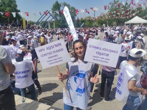 Sağlık meslek örgütleri 29 Mayıs’ta Ankara’da Beyaz Miting’de taleplerini bir kez daha dile getirdi. Alanda kadınlar bu kez daha görünürdü. İstanbul Sözleşmesi’nden ücretsiz HPV aşısına, mobbingden ev içi ve iş yeri şiddetine kadar her mesele dövizlere yansıtılırken, femina işaretli SES ve TTB önlüğü giymiş kadınlar dikkat çekiciydi.