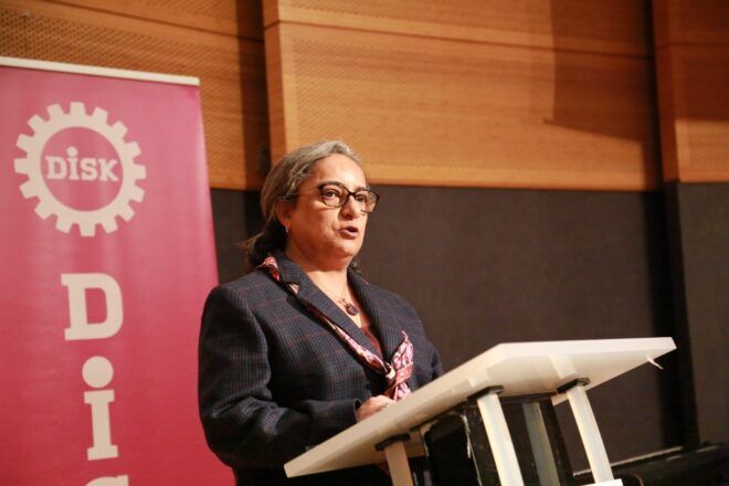 Önemli verileri içeren raporun[1] sunumu için yapılan toplantıya raporu çok sayıda kadın sendikacının yanı sıra ILO 190’ı imzalamaktan hâlâ imtina eden Türkiye’nin Çalışma Bakanlığı temsilcileri de katıldı. Biz de kadın sendikacılara hem raporu hem toplantıyı sorduk; DİSK’ten Nebile Irmak Çetin ve Dilek Yüksel, TÜRK-İŞ’ten Neslihan Taşoluk Nakaş yanıtladı. Kadınlar, emeğin önündeki örgütlenme engelinin kalkmasının şiddeti azaltacağını vurguladılar.