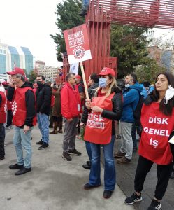 Aycan: Çalışıyoruz ama yetişemiyoruz. Kiralar 3 bin lirayı geçiyor, geçinemiyoruz. Çoluk çocuk hiçbir şeye yetişemiyoruz. İş yok, iş bulamıyoruz, iş bulamayınca erkeklere daha fazla muhtaç kalıyoruz. Erkekler de bizi öldürüyor. Kadınların yaşaması özgür olması için buradayım. Esasında Birleşik Metal Sendikası’nda kadın hakları için çok şey yapılıyor. İş yerinde bir şikayetim yok ama ücretimiz az geliyor, onun için de bugün bu meydanda toplandık.