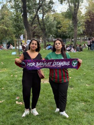 Savaş ve çatışmalı ortamın tribünlere de yansıdığını söyleyen Meliha, “En basiti geçen sene Kocaeli’ye gittiğimizde cinsiyetçi küfürlerle karşılandık. Faşist uygulamaları geçiyorum, cinsiyetçi küfürlerle biz kadınları aşağılamaya çalıştılar. Savaşın kirli yüzünü orada da bize gösterdiler. Her defasında biz barış diye direten taraf olurken, kadının futbolda, tribünde yer almasına dahi tahammül göstermiyorlar. Ama biz hep barıştan yana olduk. Orada da kendi öz gücümüzle, kadınların gücüyle önlemimizi aldık.”