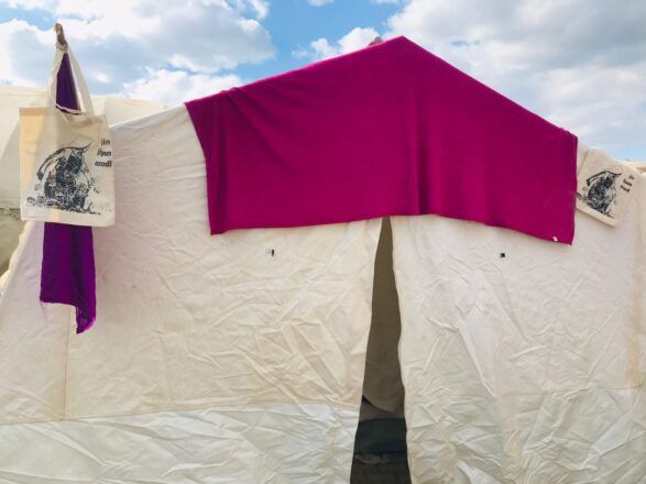 “Hem cemevinde kalan ailelerin içindeki kadınlar hem gönüllü kadınlar hem de oraya malzeme almaya gelen ya da bir şekilde şehir merkezine inmek zorunda kalan kadınlar içindi bu çadır. Yorulduğumuzda, dinlenmek istediğimizde, regl ağrısı çektiğimizde ya da kadınlar olarak aramızda paylaşımlar yapmak istediğimizde kullanabilmek için kurduk bu çadırı. Burası gidip dinlenebileceğimiz, ağrılarımız olduğunda rahatlıkla uzanabileceğimiz, yeri geldiğinde sohbet edebileceğimiz, yeri geldiğinde karşılıklı susabileceğimiz bir alan olacaktı.”