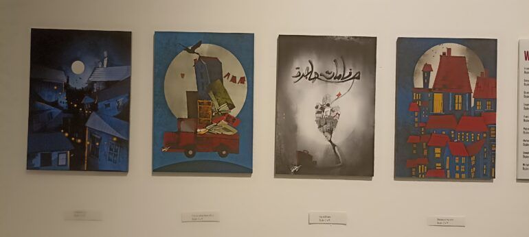 Sergide sanatçıların sadece tabloları yer almıyor. Örneğin savaş muhabirliği de yapmış olan Maryam’in bu ülkelerde çektiği fotoğraf kareleri, her sanatçının hayatını özetleyen kişisel fotoğraf albümleri, ülkelerinde yaptıkları işlere dair kimlikler, günlükler, kişisel eşyalar vb. de sergi alanında yer bulmuş durumda.