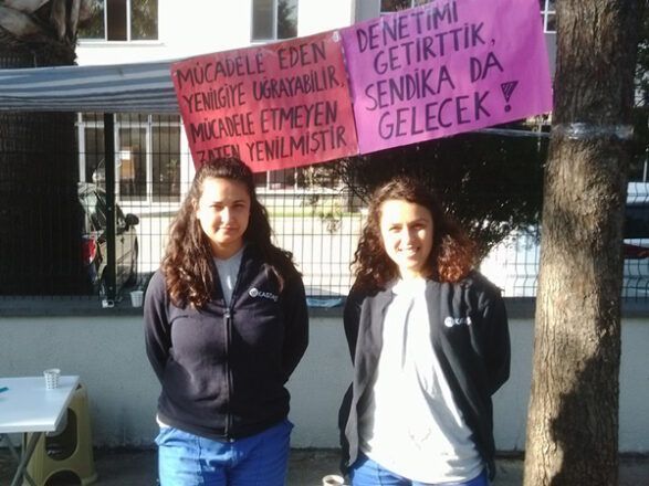 İlk olarak Petrol-İş Sendikası’na üye oldular. Ama şefler ve müdürler bu duruma tahammül edemediler. Kardelen ve Sonay’ı 2016 yılının Mart ayında işten çıkardılar. Onlar da bu tutum karşısında direniş kararı alıp fabrika önünde beklemeye başladılar. Yasal haklar noktasında da boş durmadılar, hakaret ve işe iade davası açtılar. Ne var ki davalar patron lehine sonuçlandı. Karşıyaka Adliyesi’nde görülen davada yapılan savunmada, ustabaşının bu davranışının taciz olmadığı, sadece “şefkat içerdiği” söyleniyordu! Mahkeme, işte bu savunmayı haklı buldu.