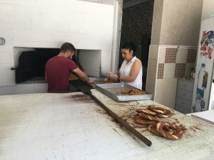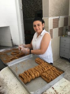 Resmen boşandıktan sonra farklı işlerde çalışan Sema, “Burası benim ikinci simit fırınım, daha önce başka bir simit fırınında çalışmıştım. Burada 07.30’da mesaiye başlıyorum ama 05.30’da ayaktayım, çünkü evimle de ilgilenmek zorundayım. Bulaşıktı, çamaşırdı, temizlikti. Sonra buraya geliyorum. Simit ustaları simitleri yaparken onlara yardım ediyorum ama hamuru bağlamayı ustalar yapıyor. Tepsilere dizilen simit hamurunu fırınlamadan önce ustayla beraber açıyorum. Tezgâha da bakıyorum, dükkânın temizliğini de yapıyorum” diye konuşuyor.