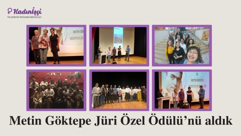 Ve üç yıldır yayın hayatını sürdüren Kadınİşçi, 27. Metin Göktepe Gazetecilik Ödülleri çerçevesinde jüri özel ödülüne layık görüldü. 15 Nisan saat 17.00’da Şişli Nazım Hikmet Kültür ve Sanat Evi’nde yapılan ödül töreninde ödül alan diğer gazetecilerle birlikte Kadınİşçi ekibi olarak salonda yerimizi aldığımızda, ilk ödülün bize verileceğini bilmiyorduk. Bu sürpriz heyecanımızı doruk noktasına çıkardı.