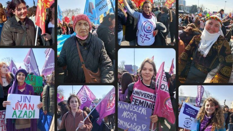 “Bir kadın işçinin boşanırken yaşadığını kadın arkadaşların tamamı bilir. Biz boşanamayız kolay kolay, çünkü bizim paramız yok, çünkü bizim iznimiz yok. Bunun için bir gün izin istemek, bunun için 1.000 TL para istemek politik bir meseledir.”
