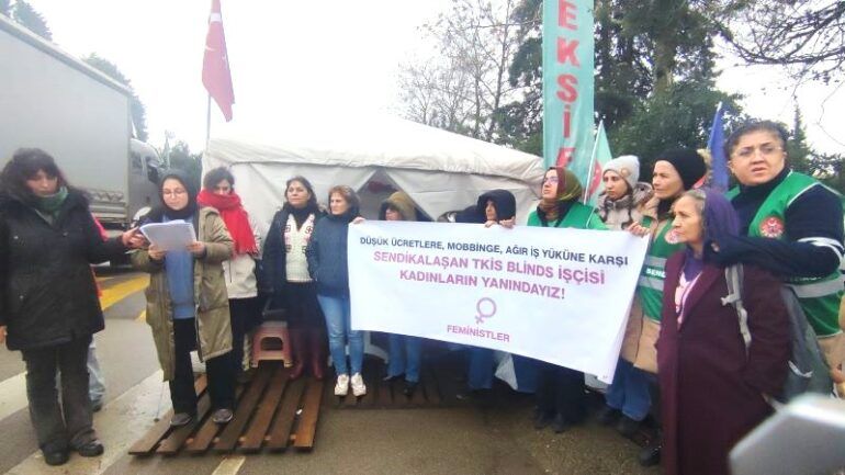 “Bir kadın işçinin boşanırken yaşadığını kadın arkadaşların tamamı bilir. Biz boşanamayız kolay kolay, çünkü bizim paramız yok, çünkü bizim iznimiz yok. Bunun için bir gün izin istemek, bunun için 1.000 TL para istemek politik bir meseledir.”