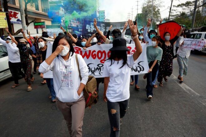 – Sigorta şirketleri ve moda markaları da dahil olmak üzere çok uluslu şirketleri Myanmar’dan sorumlu bir şekilde çekilmeye çağırıyoruz.