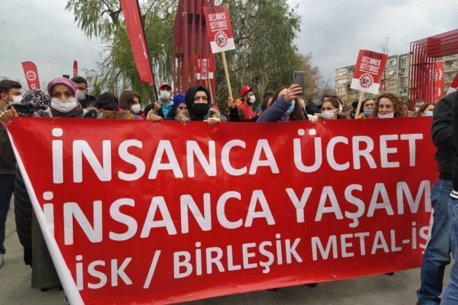 sermaye yanlısı iktisatçılar, ücretleri düşürmeden enflasyonun düşürülemeyeceğini vaaz ediyor. sermayenin kârını kutsal, dolayısıyla dokunulmaz, eksiltilemez görüyorlar çünkü! hazine ve maliye bakanı mehmet şimşek, türkiye’yi bir üretim üssü haline getirmekten bahsediyor. bunun için de emeğin ucuz ve çaresiz olması gerekiyor.[1] bu, güvencesiz çalışma koşulları ve toplu sözleşme düzeninin fiilen ortadan kalkmasını gerektiriyor. türkiye’nin birçok yerinde çiçeklenen işçi direnişleri bu çabalara cevap oluyor, olacak. türk-iş ve hak-iş’i dahi ses çıkarmaya yönelten de bence o direnişler.