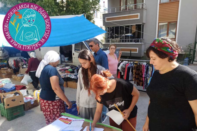kampanyayı mayısta kocaeli ekmek ve gül derneği başlatmış, sonra ekmek ve gül tüm ülkeye yayılmasını sağlamış. sonra yerellerde kadın dernekleri ve veli dernekleri talebe sahip çıkmış; okul önlerinde, işyerlerinde, semt pazarlarında, şehir meydanlarında bu talebi savunmuş, standlar açıp imza toplamış yani kampanyayı ilmek ilmek örmüşler. ardından, aralarında çocuk hakları derneklerinin de bulunduğu 46 örgüt imzaladıkları bir açıklamada, beslenmenin çocukların insan hakları arasında olduğunu hatırlatarak, günde bir öğün sağlıklı yemek talebini savunmuş.