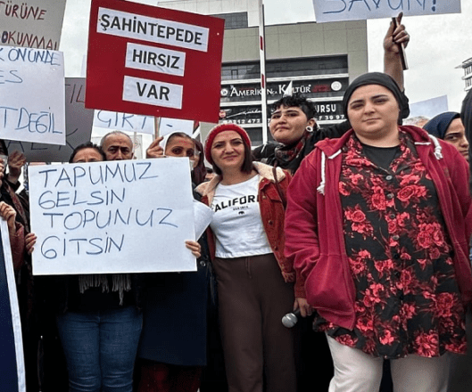 Şahintepeli insanlar, yaşamlarını sürdürürken ani bir gelişmeyle irkildiler. AKP’li belediye yetkilisi, “depremde evleriniz yıkılabilir” diyordu. Diyelim ki öyle olacak. Bunu neden dert ediniyorlardı? Binaların depreme karşı “dayanıksız olduğu” uyarısının ardından asıl gerçeği öğrendiler. Resmi olarak evlerinin tapusuna sahip olan halka 35 kilometre uzaklıkta yeni bir mahalleyi gösteriyordu Belediye. “Sizin artık yeriniz burası, çıkın Şahintepe’den” diyorlardı.