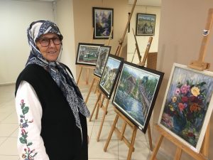 “İlk sergime sadece ailem ve birkaç arkadaşım gelmişti. Ayrıca Belediye’nin etkinliği olduğu için açılışa Belediye Başkanı da geldi. Konya valisi de yanındaydı. Birlikte sergimi gezdikten sonra yanıma gelen Belediye Başkanı, Vali’ye, ‘Size bahsettiğim ressam bu’ diyerek beni takdim etti. Hiç unutmuyorum o anı, sergimi gezen Vali, basın müsteşarına dönerek, ‘Not al. Anadolu’nun anasını dünyaya tanıtacağız!’ dedi. Onun sayesinde ikinci sergimi açtım. O sergide dokuz tablom satıldı. Ben de şal örmeyi bırakıp tamamen resim sanatına yöneldim. Kendi tarzımı geliştirmeye çabaladım. O günden beridir doğanın, eski tarihi konakların, cumbalı evlerin resimlerini yapmaya devam ediyorum. Yaptığım resimler çevremde takdir görüyor, beğeniliyor. Yerel yöneticiler, oda başkanları, sivil toplum kuruluşları destek veriyor. Sanatıma gösterilen alakadan memnunum.”