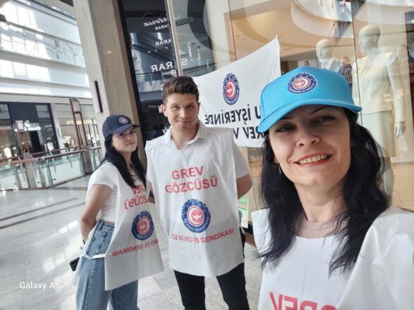 Greve başladıklatan sonra işten çıkarılan Ayşegül Şahin, aldığı ücret ile geçinemediği için greve katıldığını vurguluyor. Ayşegül süreci anlatıyor: “14 senedir çocuğuma hem annelik hem de babalık yapıyorum. Çocuğum kundaktayken eşimden şiddet gördüğüm için ayrıldım. Dolayısıyla aldığım asgari ücret maalesef ki yetmiyor. Ankara’da yaşıyorum. Kiralar 15 bin TL. Geri kalan 2 bin TL ile ben ne yapacağım? Çocuğumun okul taksitini mi yatıracağım? Elektrik, su faturası mı ödeyeceğim? Kasiyer olarak çalışıyordum. 8 aya yakındır toplu iş sözleşmemiz imzalanmadı. İlk 6 ay için yüzde 15, diğer 6 ay için yüzde 20’lik zam istedik. Bize yüzde 4 zam vermek istediler. Biz geçinmediğimiz için greve çıkma kararı aldık. İstediğimiz zam verilse en fazla 23 bin TL ücret alacaktık. Talebimiz buydu. Hayat şartları şuan maalesef baya zor, bir elin gördüğünü diğer el görmüyor. Maaşımız elimize geçmeden bitiyor. Çalıştığım mağazada, müdür üzerimde çok baskı kurmaya çalıştı. ‘Sen kadınsın elinin hamuruyla greve çıkmışsın. Ne sürünüyorsun mağazanın önünde’ diye psikolojik şiddete maruz bırakıldım. Sendikalı işçilere bölge müdürleri baskı yapıyor. Arkadaşlarımız teker teker yarım saat boyunca depolara çekildi. ‘İşten kovulursunuz başka sektörlerde de size iş buldurmayız’ denildi. Öyle tehditler var ki sendikamız suç duyurusunda bulundu. Hukuksal bir süreç başlattık. ‘Kadın sesini çıkaramaz, otur yerinde mecbursun. Başka bir yere gidemezsin. Başka işte yapamazsın. Bizden daha iyi firma bulamazsın, hele bu halinle zaten yaftalanırsın’ gibi söylemlere maruz kalıyoruz.”