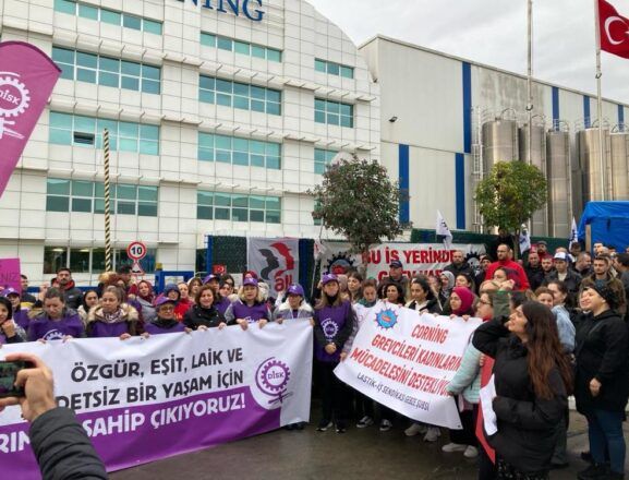 25 Kasım günü DİSK Kadın Komisyonu olarak Gebze’de devam eden, Lastik-İş Sendikası’nın örgütlü olduğu Corning Optik Grevi’ndeki kadınlar grevin 135. gününde ziyaret edildi. “Özgür, eşit, laik ve şiddetsiz bir yaşam için haklarımıza sahip çıkıyoruz” pankartı açan komisyon üyeleri burada grevci kadınlarla bir araya gelerek sohbet etti. Grevdeki işçilerin okuduğu açıklamada Corning patronuna seslenildi. İşçilerin taleplerinin kabul edilerek bir an önce işbaşı yapılması çağrısında bulunuldu. Ziyarette DİSK Başkanı Arzu Çerkezoğlu’da bir açıklama yaptı.