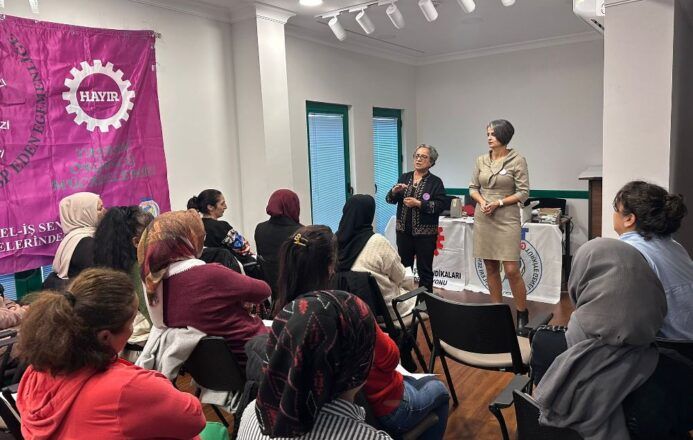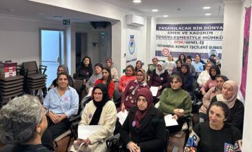 Her yıl olduğu gibi bu yıl da 25 Kasım Kadına Yönelik Şiddetle Mücadele Günü’nde kadınlar işte, evde, sokakta kadına yönelik erkek ve devlet şiddetini görünür kılmak, protesto etmek, mücadele yöntemleri geliştirmek ve bunları birleştirmek için sokaklardaydı. Bu yıl 25 Kasım’da kadın işçilerin de örgütü olan sendikalarda da işyerinde ve evde kadına yönelik şiddet protesto edildi. ILO 190 gündeme getirildi; bazı sendikalar şiddet, cinsel taciz, mobbinge yönelik farkındalık eğitimleri yaparken kimileri de sokak eylemleri örgütledi. Kadınİşçi 25 Kasım’da aynı anda birkaç yerde idi. Eğitimlere, işçi eylemlerine, direniş ziyaretlerine katıldı. Arkadaşlarımız izlenimlerini anlatıyorlar.