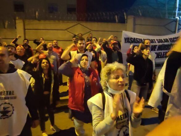 “Sendika hakkı engellenemez”, “Yaşasın onurlu mücadelemiz”, “Açlıktan ölmeyiz biz bu yoldan dönmeyiz” vb. sloganlar atarak fabrika önünde bekleyen kitle içerisinde, gündüz vardiyasında olduğu için eyleme katılamayan, kapı önünde buluştuğumuz Smart işçisi kadınlarla, örgütlenme süreçlerini dinleyerek eyleme dair sohbet ettik.