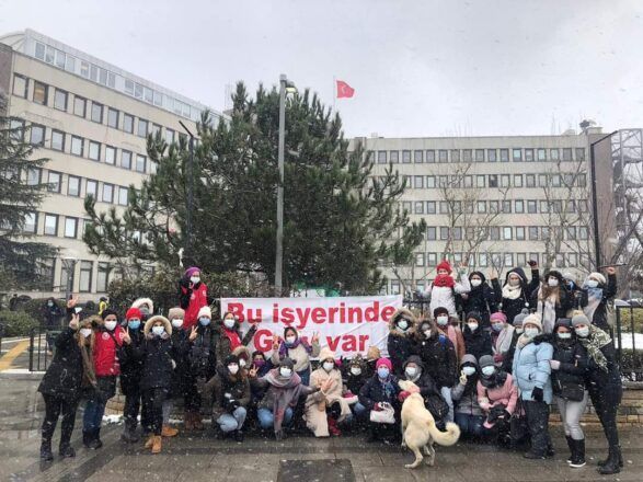 Nazan: Çünkü sendikaların tepesinde oturan erkekler onları dizayn etmeye çalışıyorlar. İşçi artık yaşadığı yoksullukla karşı karşıya. Kadın işçiler yaşadığı cinsel tacizi, mobbingi, işyerinde yaşadığı her türlü ayrımcılığı bir araya gelip konuşabiliyor. O denli bilinçliler, sendika bunların gerisinde kalıyor. Bizi görevden alırken “sendikayı itibarsızlaştırmak” şeklinde yazmışlardı. Sendikalara itibarını kaybettiren sizlersiniz. Siz zaten sendika olarak itibarınızı kaybetmişsiniz. Biz sadece olanı biteni sesli halde söylemeye çalıştık her şeyi göze alarak… Biz görevden alındık, bütün işçi arkadaşlarımıza temsilcilik teklifi yaptılar. Atama yapmaktan bahsettiler. Atanmış. Bunun adı kayyumdur. Temsilciyi görevinden al, kayyum ata…