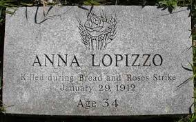 Ölümü, cenaze töreni, vurulması hakkında grevdeki bazı işçi sınıfı önderi adamların ne söylediğine dair bilgiler yer alıyor, biyografisinde. Çok sonraları bulunan mezarına, çok sonraları dikilen granit mezar taşındaki ölüm tarihi, yaşı ve bir de ekmek ve gül figürü. Neredeyse iki yazılı kaynaktan biri. Ölüm tarihi 29 Ocak 1912 diye yazılmış, altında da ölüm yaşı var 34.  Bu yaşta mı öldü tam olarak bilemiyoruz. İsminin bile Anna LoPizzo değil, Anna La Monica olduğu, küçük yaşta çalışmak zorunda kaldığı için ismini ve doğum tarihini değiştirdiği söyleniyor. Dönemin acımasız sömürü koşullarında, pek çok göçmen çocuk işçi bu yola başvurarak çalışma izni alıyormuş çünkü.