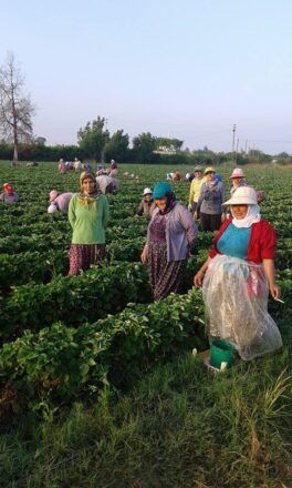 “Her çeşit sebzenin, meyvenin ekimini ve hasadını da yapıyor benim içinde bulunduğum işçi ekibi. Şu dönemler özellikle yayla köylerine aklınıza gelen ve yetişmiş olan her türlü sebzenin hasadına gidiyoruz. Şimdi pirinç ekiyoruz. Ağustos ayı ise nar toplama zamanımız. Sabah çok erken gidilir işe. Yaz aylarında örneğin 04.30’da yola çıkılacak evden. 05.15’te işbaşı yapıyoruz. Hava çok sıcak olmadan geri dönüş yapabilmek için bu kadar erken kalkıyoruz. Buraların sıcakları felaket çünkü. İşe başladıktan yaklaşık üç saat sonra kahvaltı yapıyoruz hep birlikte. Tarla sahibi için her şey dakik olmalı. Arada 10 dakika verirler dinlenmemiz ve su içmemiz için. Grup halinde çalıştığımız için bir kişi işini hatalı yaparsa patron çavuşa kızar. Biz de en iyisini yapmak için çabalıyoruz. Ekip kendini iyi hissederse zaten güzel çalışır. Ve de öyle olduğu için çok tercih edilen bir tarım işçisi ekibiyiz. Bizim günlük beş saat çalışmamızın yevmiyesi 80 TL!”