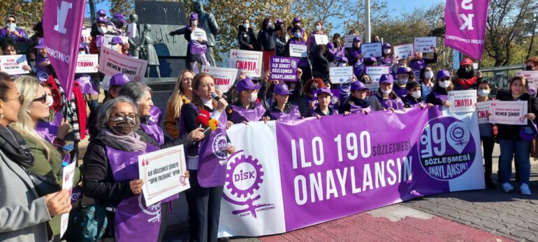 Güllü, 2019’da yürürlüğe giren ILO 190’ın henüz Türkiye tarafından onaylanmadığına dikkat çekiyor. Federasyon olarak geçen yıl ILO Ankara ile bir protokol imzaladıklarını hatırlatan Güllü, sözleşmenin imzalanması ve içeriğinin kamuoyuna anlatılması için ILO ile işbirliği yaptıklarını belirtiyor.