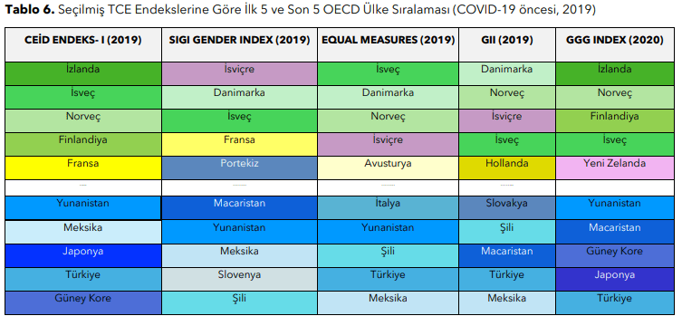 Emel Memiş, Türkiye’nin OECD’nin 36 ülkesi içinde 36. sırada olduğunu hatırlattı ve ekledi: “Türkiye, kararlara katılım, siyasi temsilde eşitlik ve çalışma hakkı alanlarında diğer OECD ülkelerine kıyasla geride. Eğitimde eşitlik ve sağlıklı yaşam hakkı gibi alanlarda ilerleme var ancak bu iyileşmeler eşitliği geri çeken alanlardaki yüksek eşitsizlikleri telafi edemiyor.”