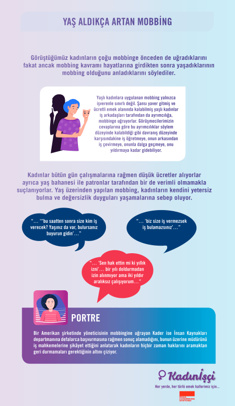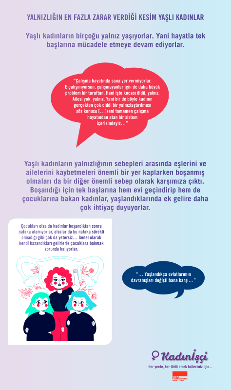 50 yaş üstü kadınların, işyerinde karşılaştıkları ve yaş almayla artan cinsiyet temelli ayrımcılıkların incelendiği, çözüme yönelik öneriler geliştirdiğimiz araştırmanın, infografiğini ve videosunu feminist kamuoyuna sunuyoruz.
