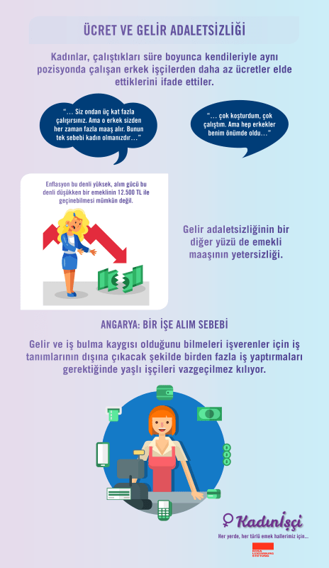 Kadınİşçi geçtiğimiz günlerde İstanbul, Bursa, Antalya ve Kütahya’dan 24 kadın yüz yüze (şehir dışında yaşayan kadınlarla online) derinlemesine görüşmeler yaparak hazırladığı 50 YAŞ ÜSTÜ KADINLARIN- ÜCRETLİ EMEK ALANINDA KARŞILAŞTIKLARICİNSİYET TEMELLİ AYRIMCILIKLAR ve ÇÖZÜM ÖNERİLERİ isimli raporu kamuoyuna sunmuştu.